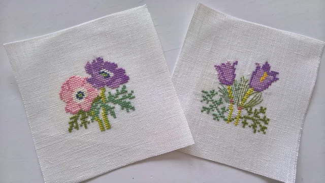 Danische Stickerei 2 Bilder Kreuzstich Blumen Handarbeit Eur 17 50 Picclick De